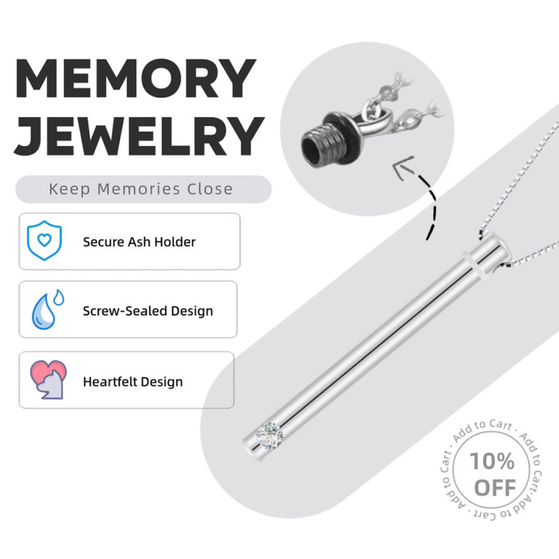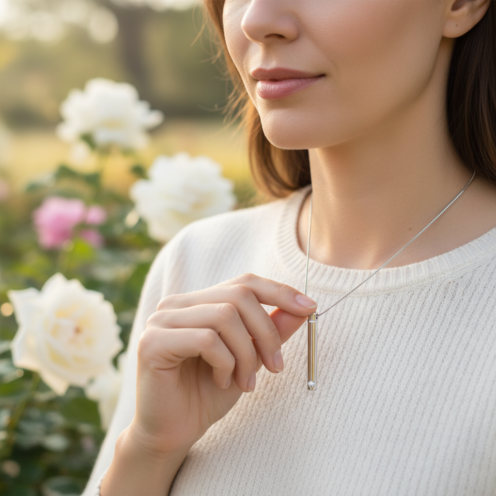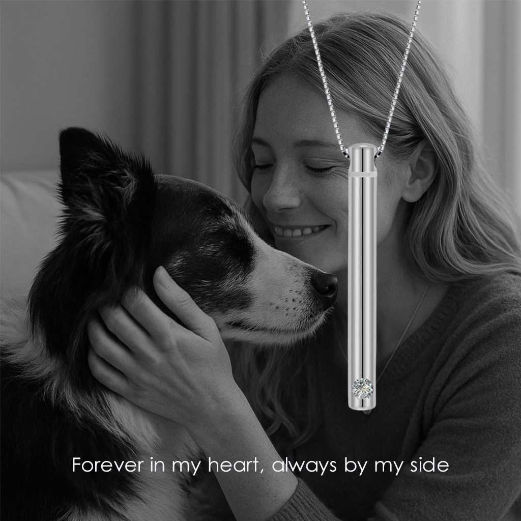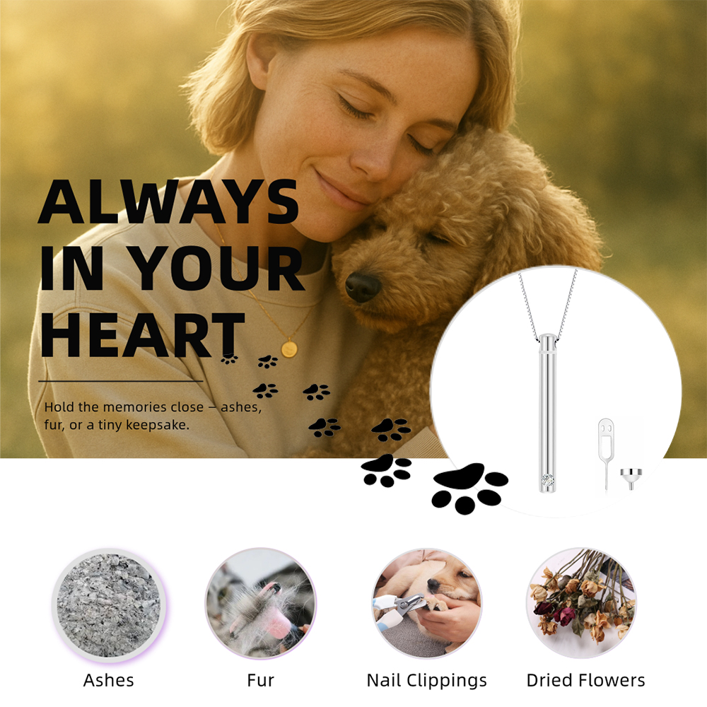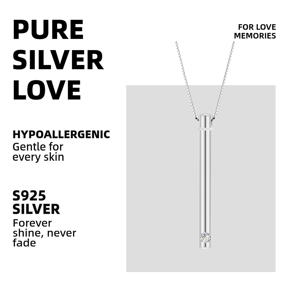 This sleek 925 sterling silver cylinder pendant discreetly holds ashes, fur, or a pinch of soil — turning precious memories into a modern symbol of love and remembrance.