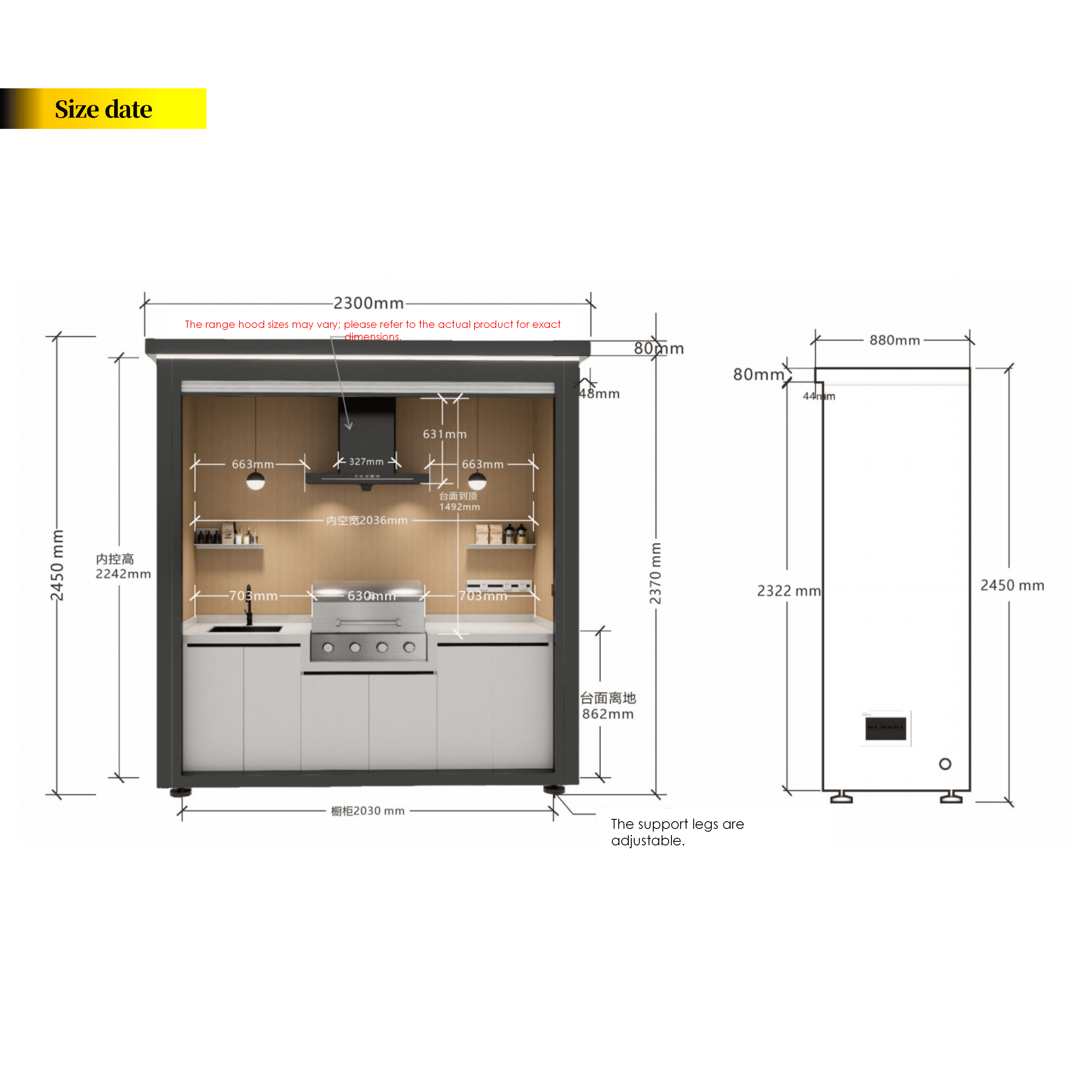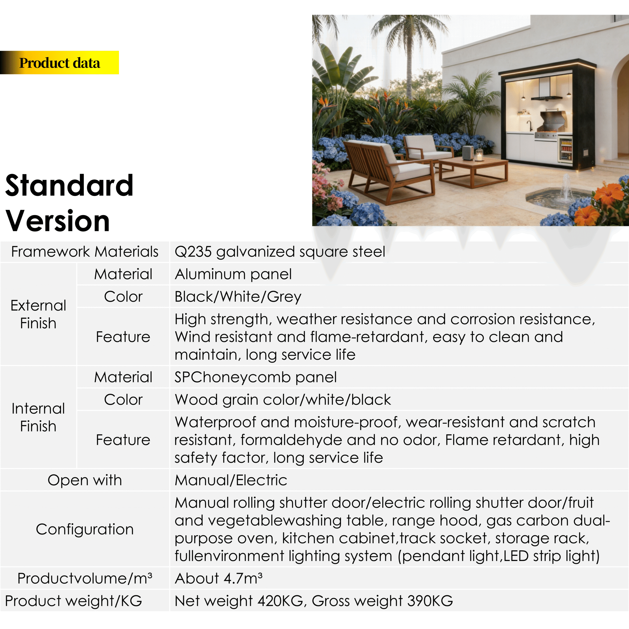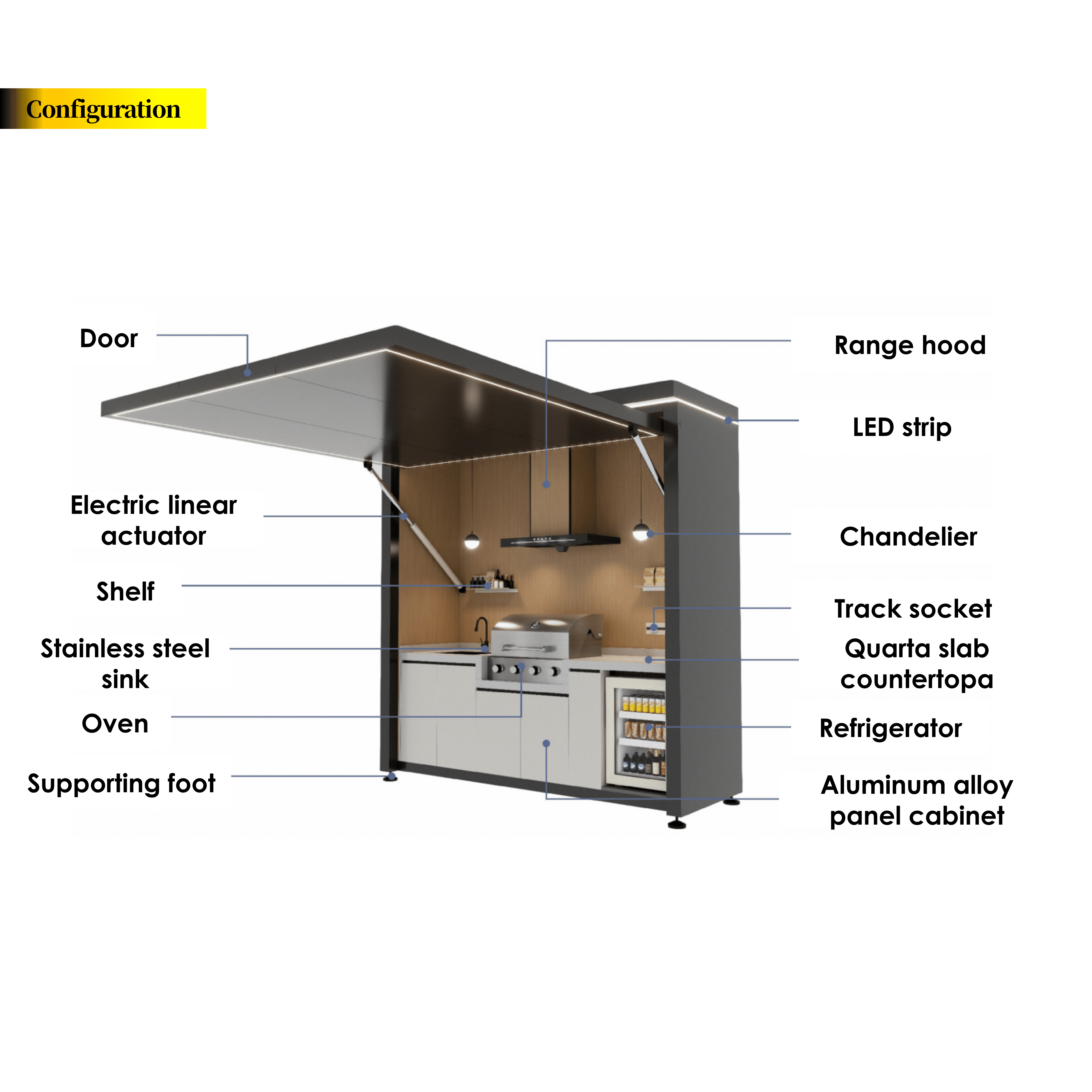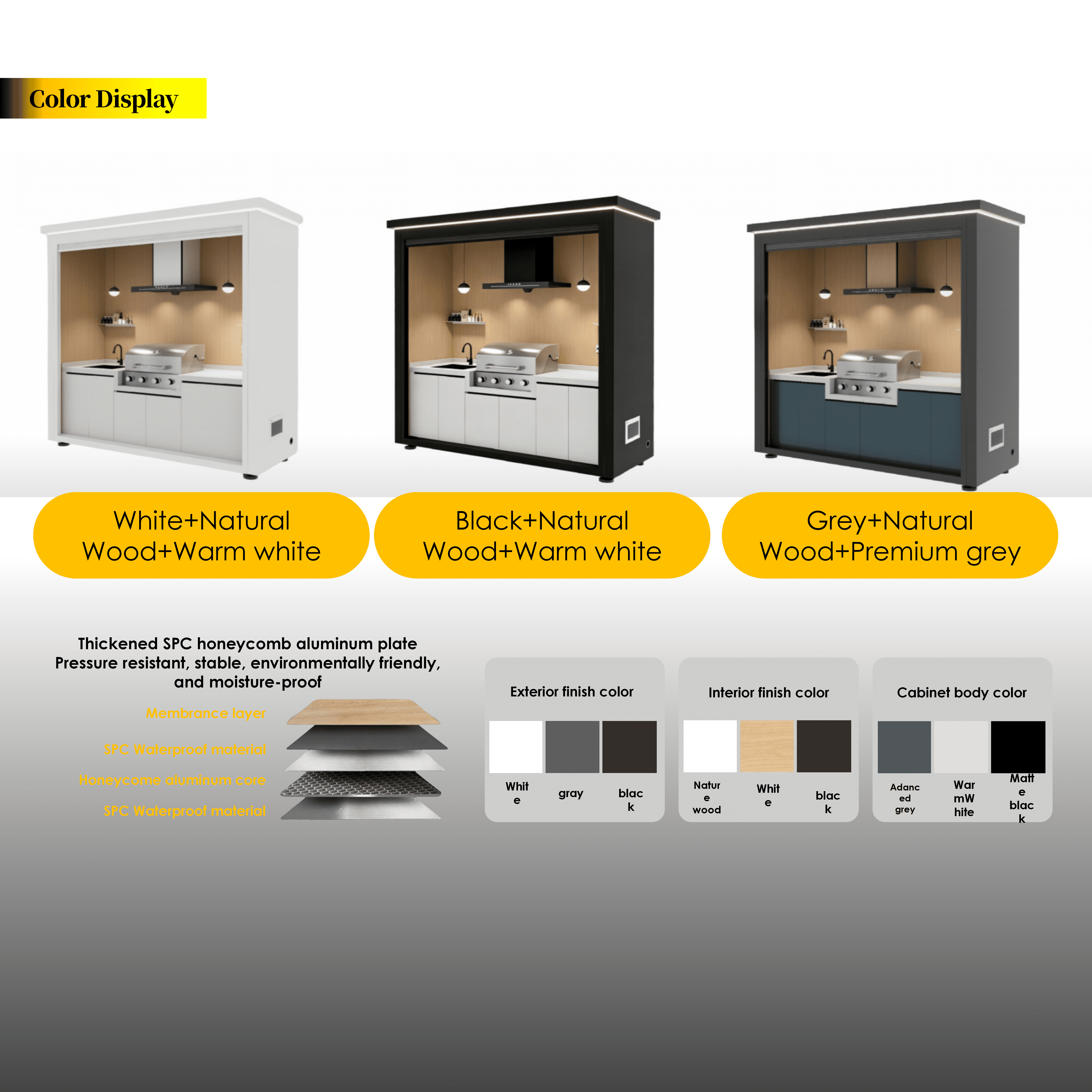 This modular outdoor kitchen system is designed for long-term outdoor use and flexible market needs.
