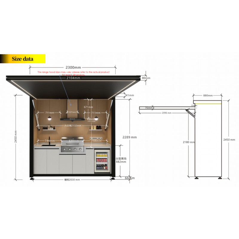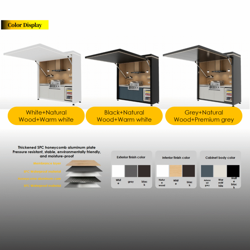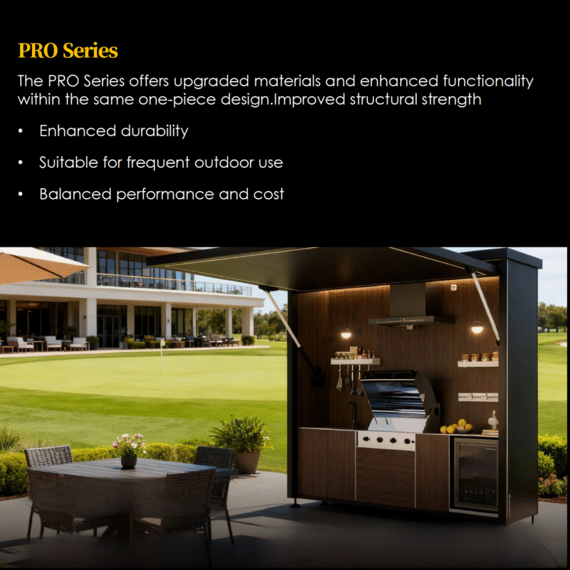 This modular outdoor kitchen system is designed for long-term outdoor use and flexible market needs.