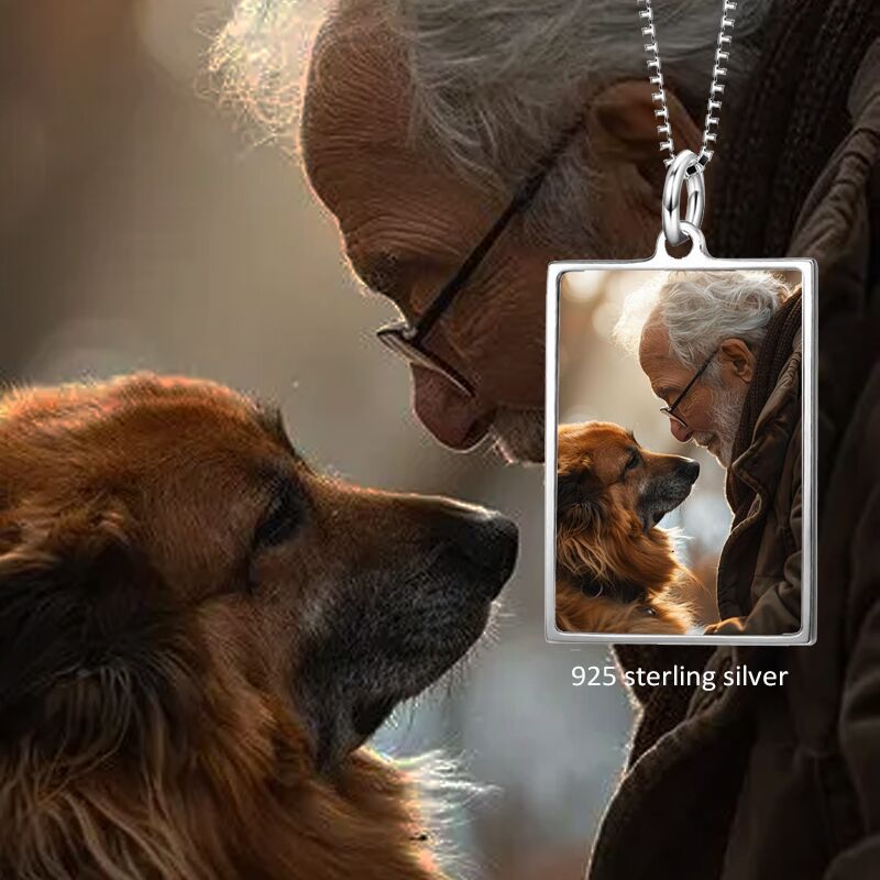 Handmade Custom Photo Pet Necklace – Sterling Silver Memorial Jewelry with Personalized Photo for Dog Cat Loss