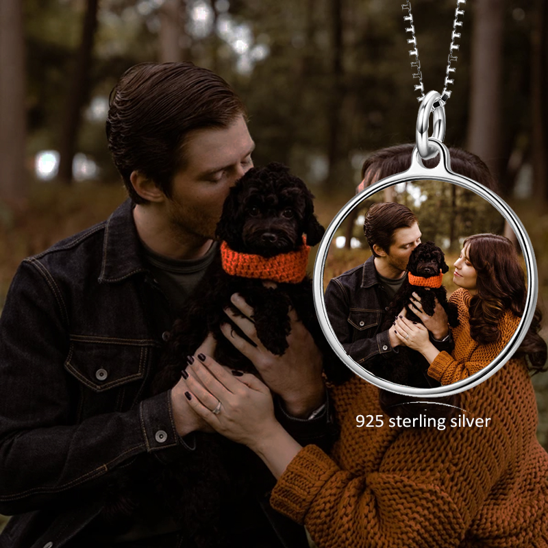 Custom Photo Pet Memorial Necklace – Sterling Silver Round Locket for Dog Cat Loss, Handmade Personalized Sympathy Gift